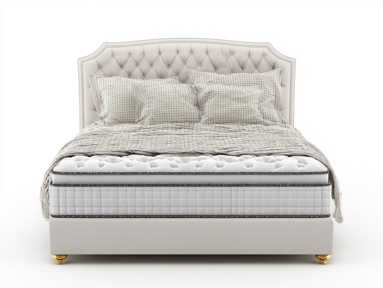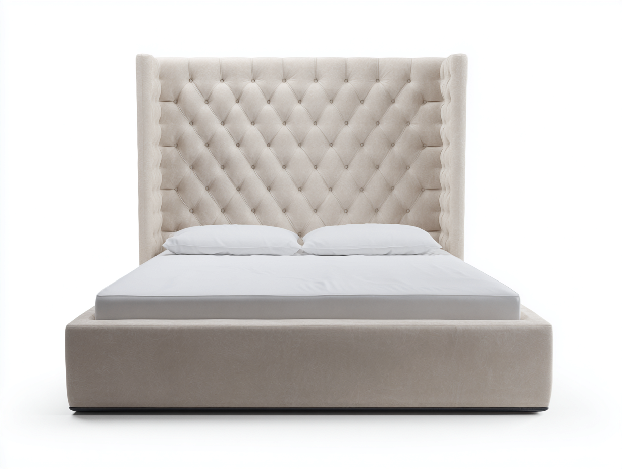Camas dobles tapizado tela capitoné 200x160x130 cm - Beige - Diseño elegante para dormitorio