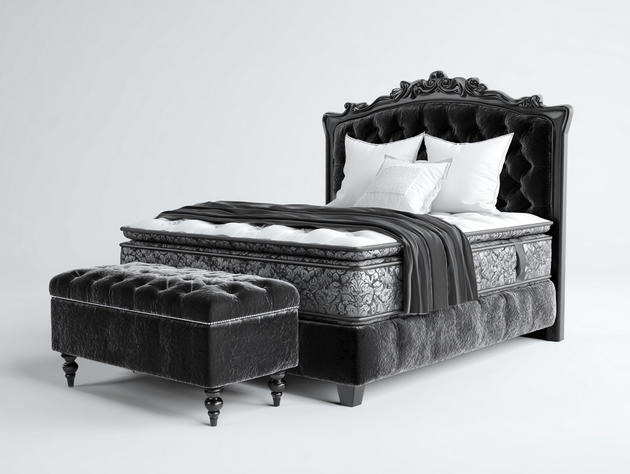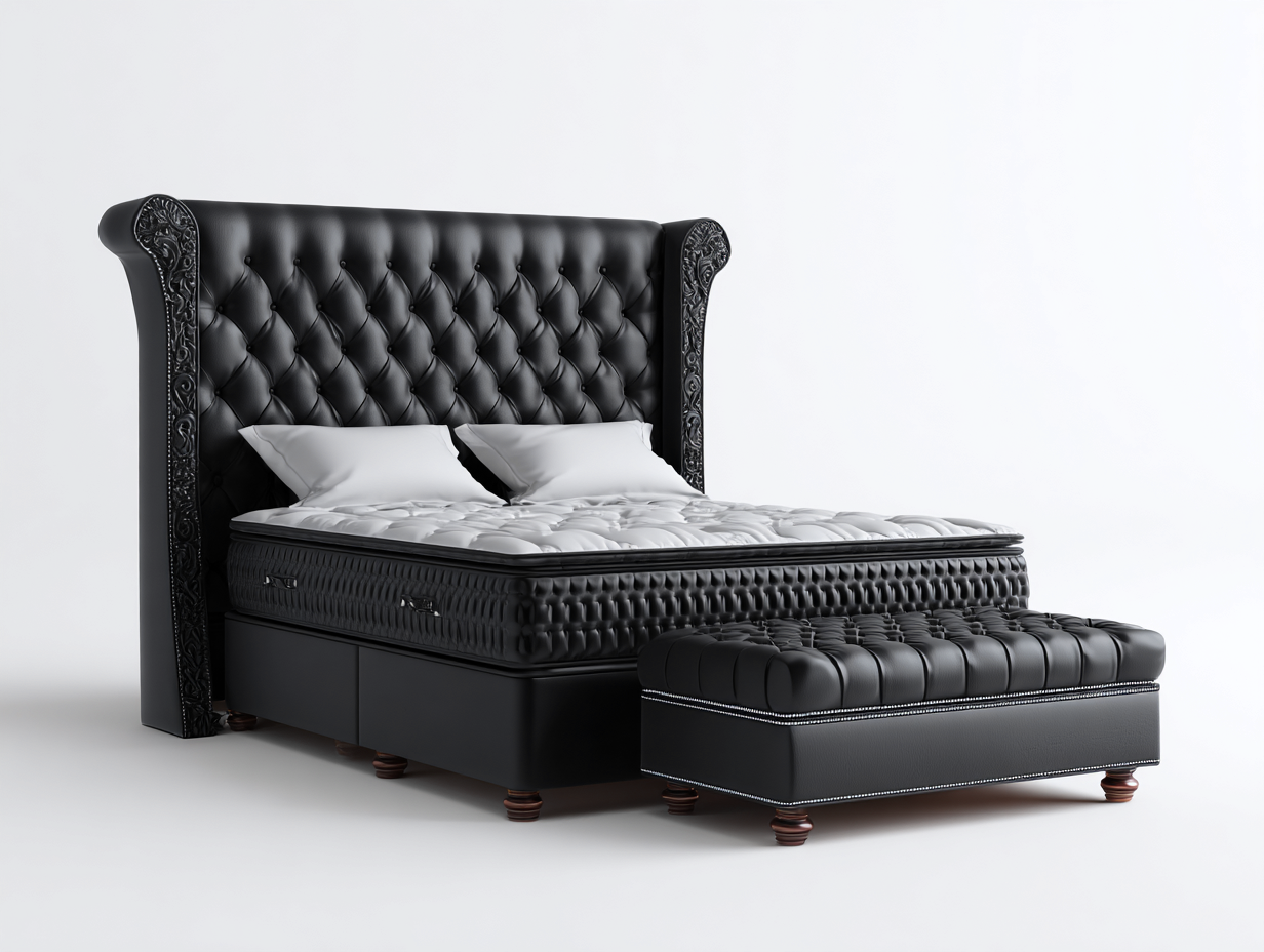 Camas dobles tapizada cuero sintético 200x180x120 cm negro para dormitorio - estilo clásico elegante