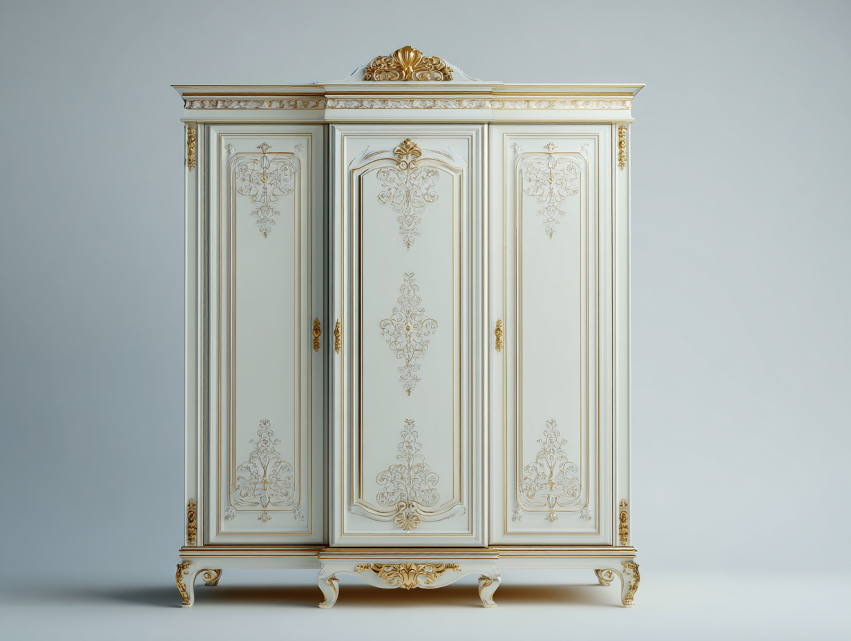 Armarios madera con 3 puertas estilo clásico tallado 210x65x215 cm - blanco y dorado - diseño elegante tradicional