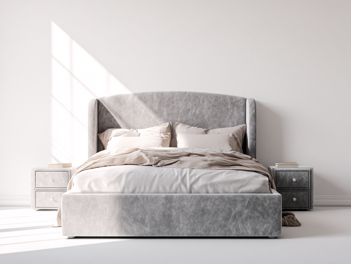 Camas dobles tapizado tela 200x160x110 cm - Gris claro - Diseño moderno para dormitorio