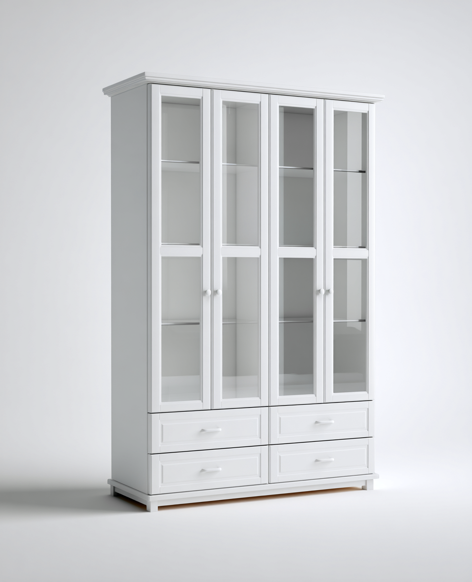 Armarios con puertas de vidrio estructura madera con cajones 150x60x200 cm - Blanco - Diseño moderno