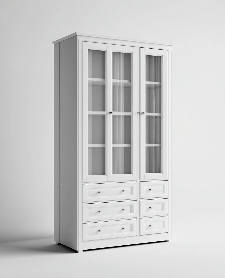 Armarios vitrina madera con 3 puertas de vidrio y 6 cajones estilo moderno 180x45x210 cm - blanco - almacenamiento elegante