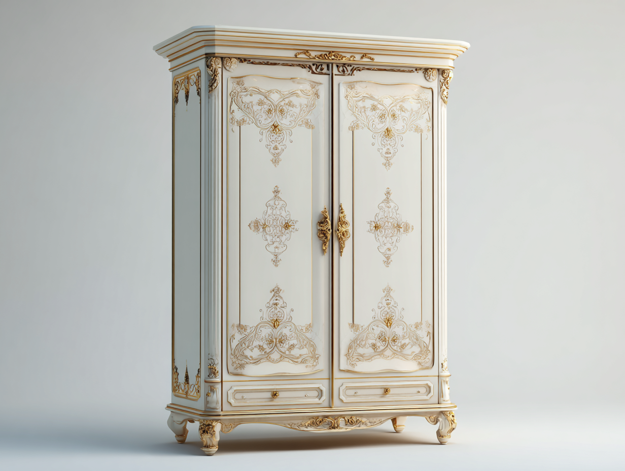 Armarios estilo clásico estructura madera con puertas y cajones 120x60x200 cm - Blanco-Dorado - Diseño clásico