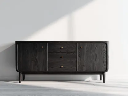 Estructura fabricada en madera resistente con acabado en color negro. La textura natural de la madera aporta un carácter elegante al mueble. Los tiradores metálicos discretos complementan el diseño contemporáneo mientras que las patas elevadas proporcionan estabilidad y un aspecto ligero.
